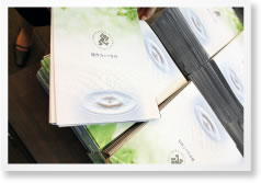 開場の際には、来場者に健育会グループの音楽療法への取組みと病院・施設の紹介パンフレットを配りました。