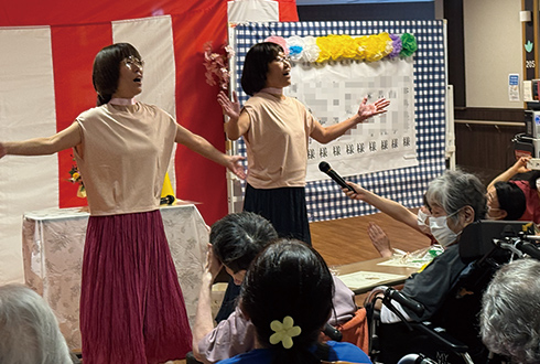 14時からの本編は職員の軽快な進行で、演奏・コント・クイズと多彩なプログラムを展開。手拍子や笑い声が絶えず、クイズでは積極的な挙手も見られるなど、終始にぎやかな雰囲気でした。