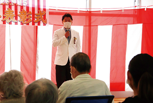 午前の部では、80歳以上の患者さん(傘寿、米寿、卒寿、最長寿)15名が対象で、ご家族をお招きして式典を開催致しました。