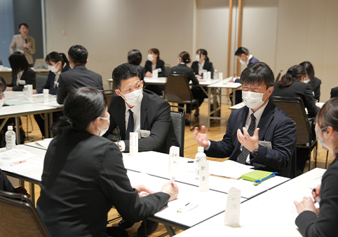 その後行われた、ビーフォーシーの相部博子先生による講義では、チーム力を活性化し、生産性を引き出す情報共有の方法や、クライアントの心を豊かにする接遇について、ディスカッションも交えて学んでもらいました。