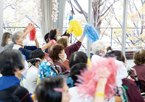 ラストは、チューリップの「心の旅」を演奏しました。エレキギターによる力強い演奏は皆さんの心を刺激し、手拍子やポンポンを振る手にもよりパワーがみなぎっていました。