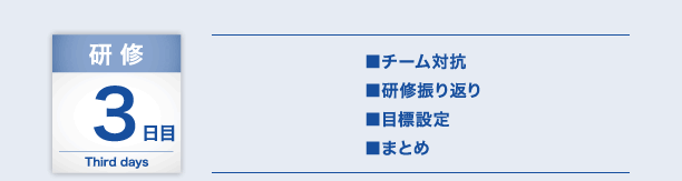 研修の集大成として、与えられた情報をもとに正しい情報を導き出すゲームをチーム対抗で実施。 ゲームの中で、グループ内で積極的に話す新社会人の姿にこの研修での成長が垣間見られました。 最後には研修の締めくくりとして2泊3日の研修の振り返りと、参加者自身の目標設定を行いました。