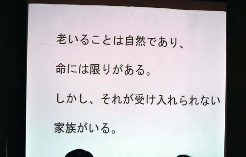 - 老いることは自然なことであり、命には限りがある。しかし、それが受け入れらない家族がいるというのも現実である。