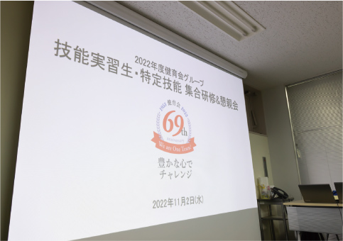 健育会グループでは2019年からベトナムとミャンマーから介護技能実習生の受け入れをスタートし、すでに4年目を迎えました。そこで11月2日、本部にて、健育会の病院や介護施設で働く外国人技能実習生・特定技能の皆さんに向けた集合研修と懇親会を実施しました。