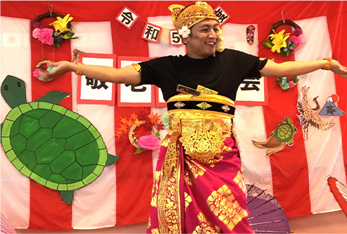 - 式典では、節目の方の表彰を行い、100歳以上の長寿を迎えられた方は実に3名。「残さず食べる事が、長寿の秘訣です」と満面の笑みで仰っているのが印象的でした。職員からの文化的催し物としては、太鼓の演舞、書道パフォーマンスを行い、「太鼓の音が良かった」「書道も目の前で迫力があった」など、とてもご満悦のご様子でした。各フロアでの縮小した開催とはなりましたが、インドネシア介護福祉士による、インドネシア舞踏、フィリピンからは歌とギター演奏など各階趣向を凝らした演出となり、「素晴らしかった」と多くの方に拍手を送って頂けました。