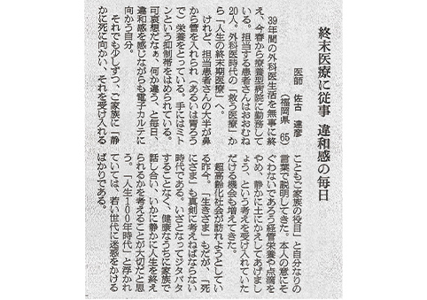 延命措置を施されている患者さんご本人も、それを見守るご家族も、深い苦しみの中にいます。患者さん一人ひとりの尊厳が守られているのかどうかを、常に職員全員で問いながら仕事に向き合ってほしいと強く願っています。