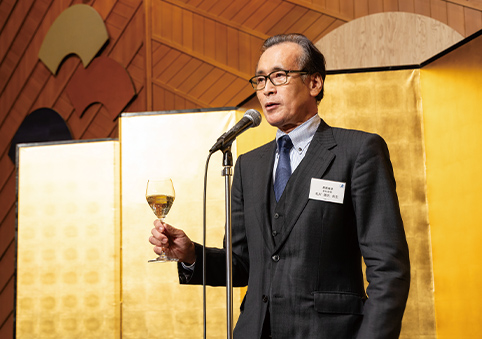 会の始まりに、慶應義塾常任理事の北川雄光先生より、健育会グループのますますの発展と、道免先生の更なる躍進を願った乾杯の挨拶をいただきました。