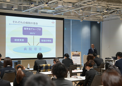 経営資源や地域の特性によって、それぞれの施設に求められる役割は異なります。まずは自らが所属する「病院・施設理念」をしっかりと胸に刻み、周囲の仲間たちと絶えず語り合うことを心がけてください。個々の「病院・施設理念」が実現に近づくことこそが、グループ全体の「ビジョン」を形作っていきます。