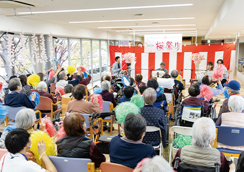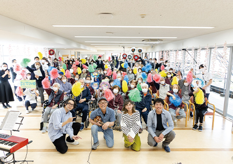 患者さんやご利用者は、ポンポンやうちわを振りながら楽しげにリズムに乗り、終始笑顔で演奏会を堪能されていました。